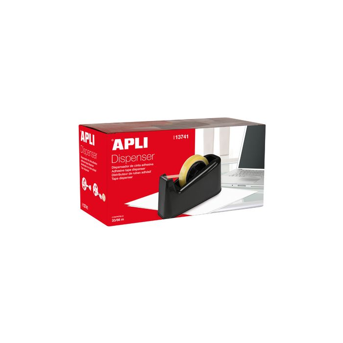 APLI Dévidoir de table, non équipé, noir pour ruban adhésif jusqu'à 25 mm x 66 m, en plastique ABS, avec adapteur de mandrin (13741)