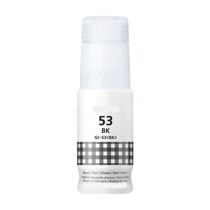 Bouteille d'encre 4699C001 / GI-53 BK noire compatible. Bouteille d'encre à bas prix pour votre imprimante jet d'encre Canon, expédiée rapidement !