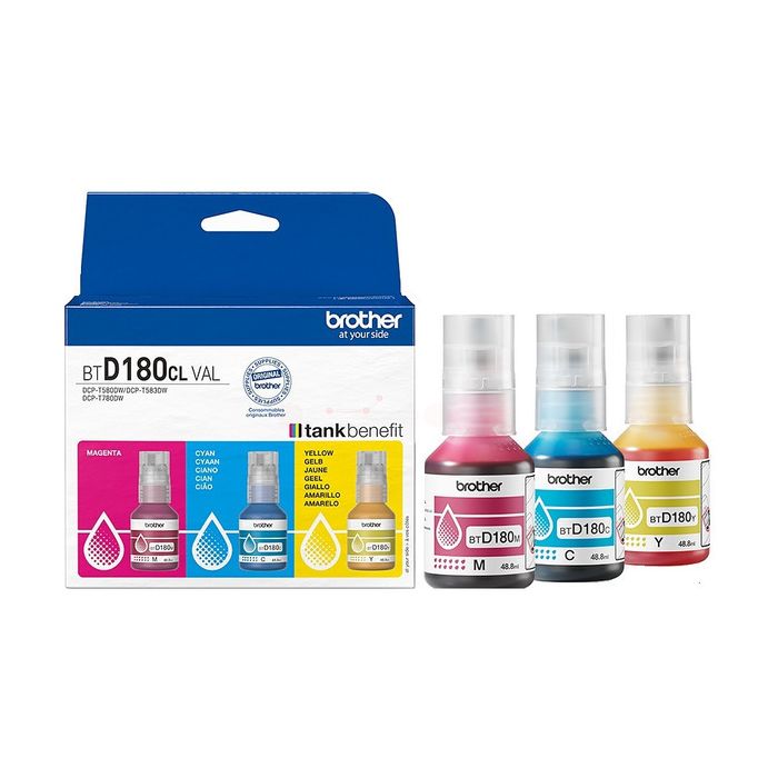 Bouteille d'encre d'origine - Brother BTD180CLVAL - multipack 3 couleurs : cyan, magenta, jaune