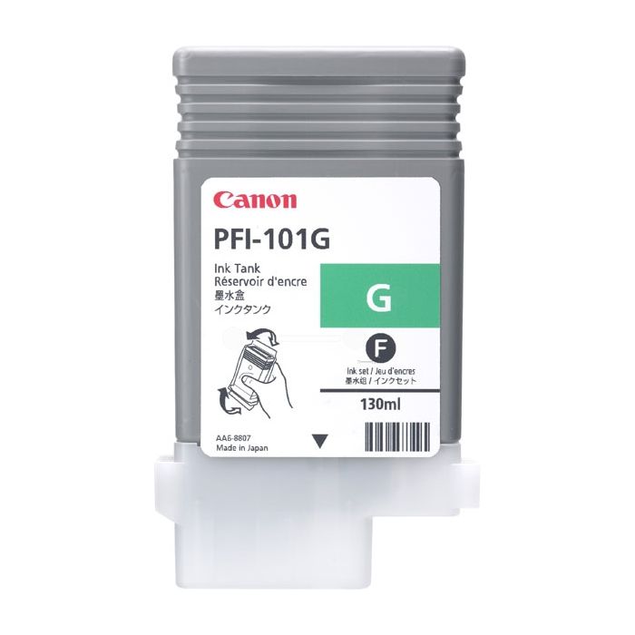 Cartouche 0890B001 / PFI-101 G verte d'origine. Expédiée rapidement, cette cartouche vous garantie un résultat à la pointe de la perfection !