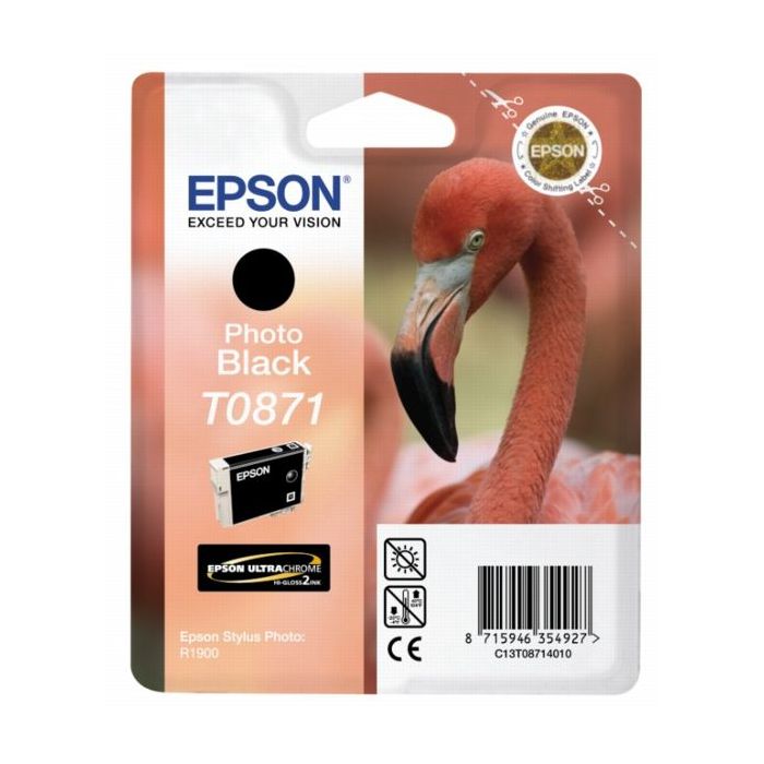 Cartouche C13T08714010 / T0871 noire d'origine. Expédiée rapidement, cette cartouche vous garantie un résultat à la pointe de la perfection !