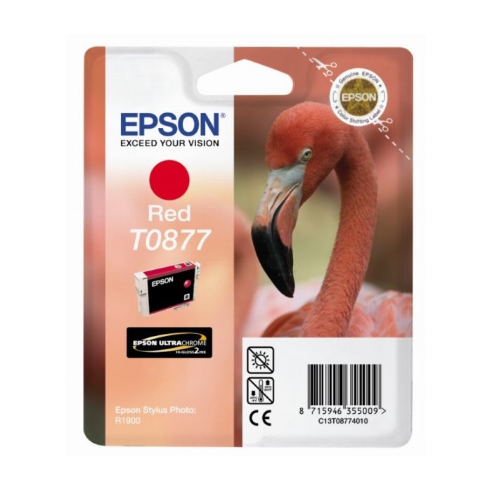 Cartouche C13T08774010 / T0877 rouge d'origine. Expédiée rapidement, cette cartouche vous garantie un résultat à la pointe de la perfection !
