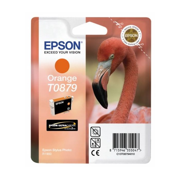 Cartouche C13T08794010 / T0879 orange d'origine. Expédiée rapidement, cette cartouche vous garantie un résultat à la pointe de la perfection !