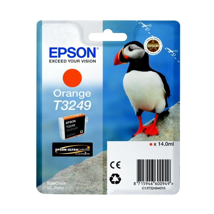 Cartouche C13T32494010 / T3249 orange d'origine. Expédiée rapidement, cette cartouche vous garantie un résultat à la pointe de la perfection !