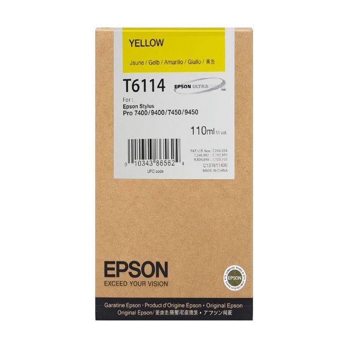 Cartouche C13T611400 / T6114 jaune d'origine. Expédiée rapidement, cette cartouche vous garantie un résultat à la pointe de la perfection !