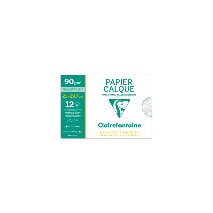 Clairefontaine Papier calque, 90/95 g/m2, 240 x 320 mm sans acide et pH neutre, biodégradable et recyclable, parfaitement pérenne et résistant à la lumière, adapté pour l'impression offset ou en digital contenu: 20 feuilles (96873C)