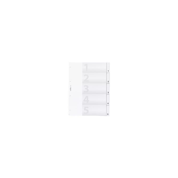 DURABLE Intercalaires en plastique, A4, 5 touches, transp. transparent, en film rigide, avec insertions bristol unis, perforation: 80x80x80 mm, dimensions: (L)224 x (H)297 mm (6820-19)