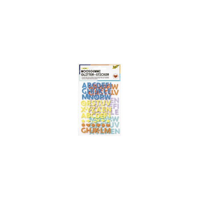 folia Sticker pailleté en caoutchouc mousse LETTERS autocollant, caractères d'imprimerie assortis dans les couleurs: jaune, bleu, lilas, orange et turquoise contenu: 128 pièces sur 2 feuilles (23776)