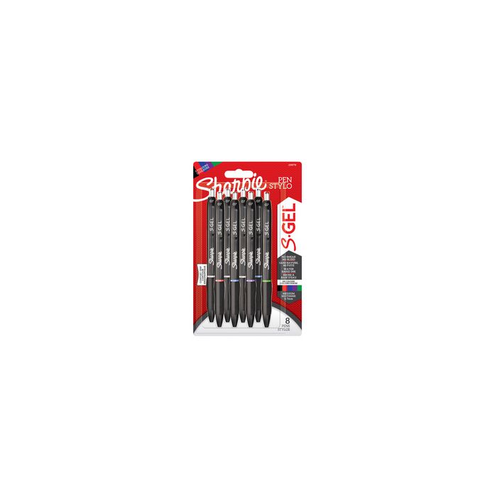 Sharpie Stylo roller à encre gel S-GEL, blister, assorti tige noir mat avec détails chromés dans la couleur du trait,clip robuste, zone de préhension caoutchoutée, ne laisse pasde trace, épaisseur du trait: 0,7 mm contenu: 8 stylos (2198778) assorti dans différentes couleurs de tracé: 3x noir, 2x bleu, 1x rouge, 1x vert et 1x violet