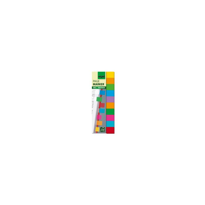 sigel Marque-page repositionnable Film Multicolor, 44x12,5mm500 feuilles, en sachet, film inscriptible et s'enlève sans laisser de traces, assorti dans les couleurs: jaune, orange foncé, vert bleu, violet, orange, vert foncé, rose, turquoise, rouge (HN684)