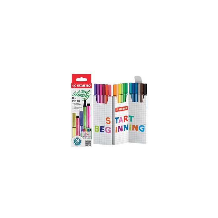 STABILO Feutre Pen 68, set zigzag de 18 pièces